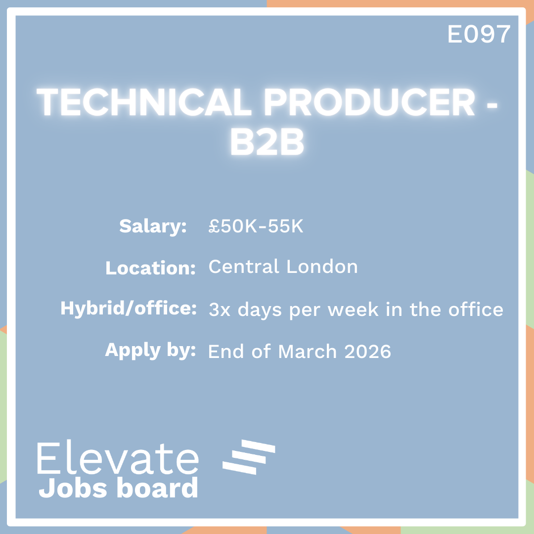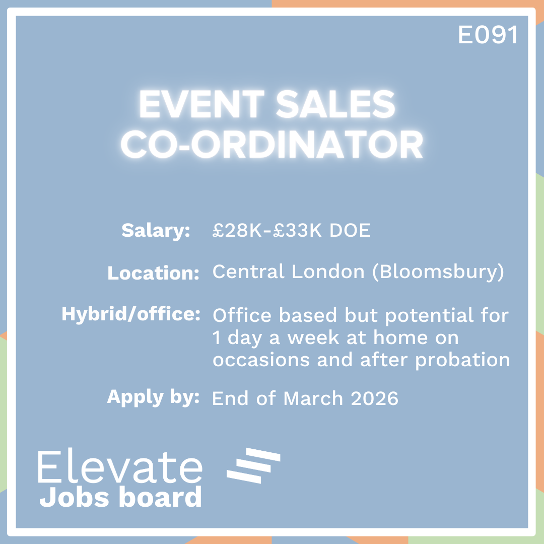 If you’re part of the Elevate community and you want to post a job please email emma@castlebell.co.uk with “POST AN ELEVATE JOB” in the subject line. We will be asking advertisers to make a nominal donation for all roles successfully filled. All income from this project will be reinvested back into the work we do here at Elevate.