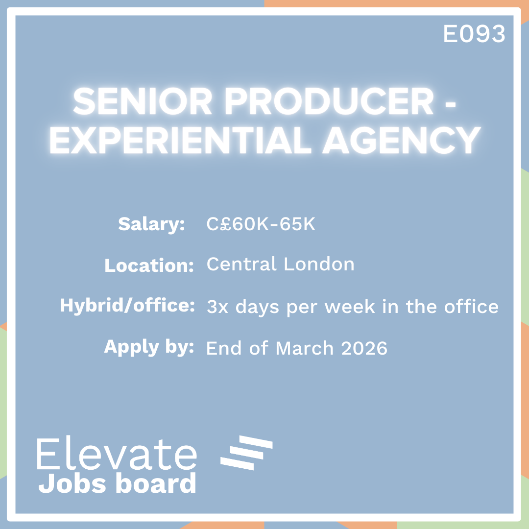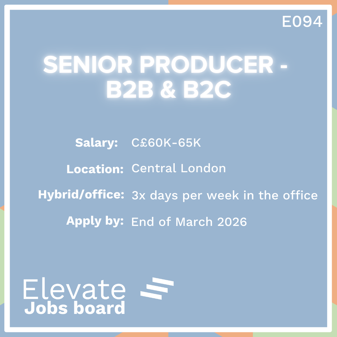 This agency specialising in B2C experiential events for the beauty industry is looking for an experienced Senior Producer to join their ambitious and growing team. Working on some incredible clients on activations and high end events in the UK and internationally. Please only apply if you have B2C agency experience and are used to working in a fast paced environment.